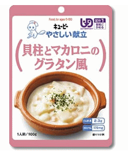 ヘルシーキューピー 介護食 容易にかめる貝柱とマカロニのグラタン風 100g 5袋セット価格: 1,100円レビュー評価: 0.0 レビュー数:0 【商品名】 ヘルシーキューピー 介護食 容易にかめる 貝柱とマカロニのグラタン風 【原材料】 野菜(じゃがいも、たまねぎ、にんじん)、クリーム加工品(植物油脂、クリーム、脱脂粉乳)、牛乳、いたや貝柱、マカロニ、バター、小麦粉、でん粉、乳たん白加工品、チーズ加工品、食塩、酵母エキス、植物油脂、卵黄油、ほたてエキスパウダー、香辛料、卵殻カルシウム、増粘剤(キサンタンガム)、調味料(アミノ酸等)、(原材料の一部に大豆を含む) 【商品説明】 ほんのりとチーズをきかせたクリーム感たっぷりのホワイトソースで、貝柱やマカロニ、じゃがいもを一緒にグラタン風に仕上げました。 【やさしい献立】 区分1(かたいもの |